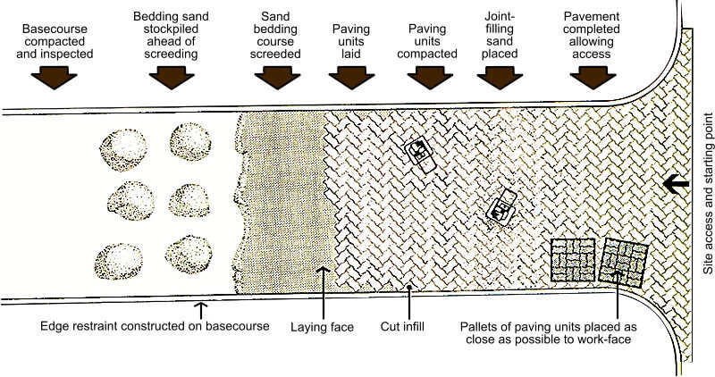 Start with a good, properly compacted base, before placing the sand bedding. After allowing surcharge for compaction, screed the sand with guide rods to achieve a uniform thickness of 30mm.